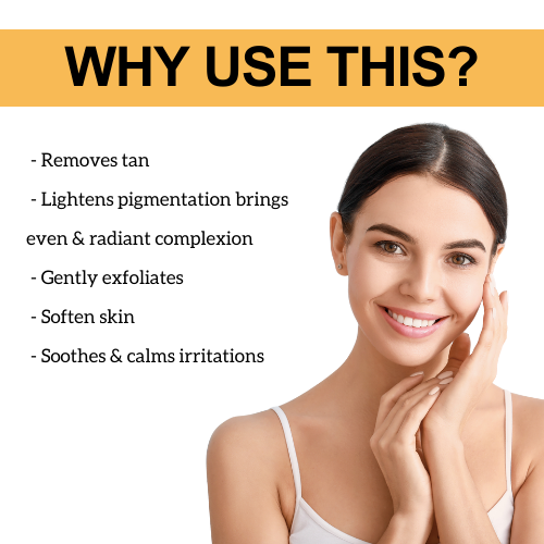 With skin lightning and immediate tan removal formula. Works for lightning of skin tone and remove the tanning effect due to sun burn.