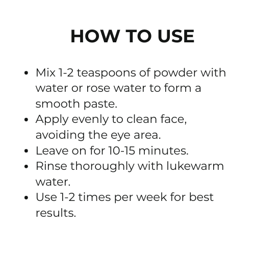 - Mix 1-2 teaspoons of powder with water or rose water to form a smooth paste.
