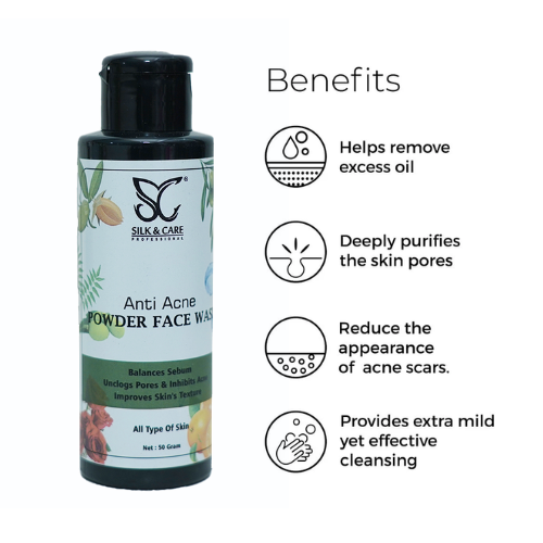 Silk & Care Powder Face Wash is a unique product to prevent blackheads and whiteheads. Easy to carry and easy to use. Keep the glow of the skin. Available in three variants.